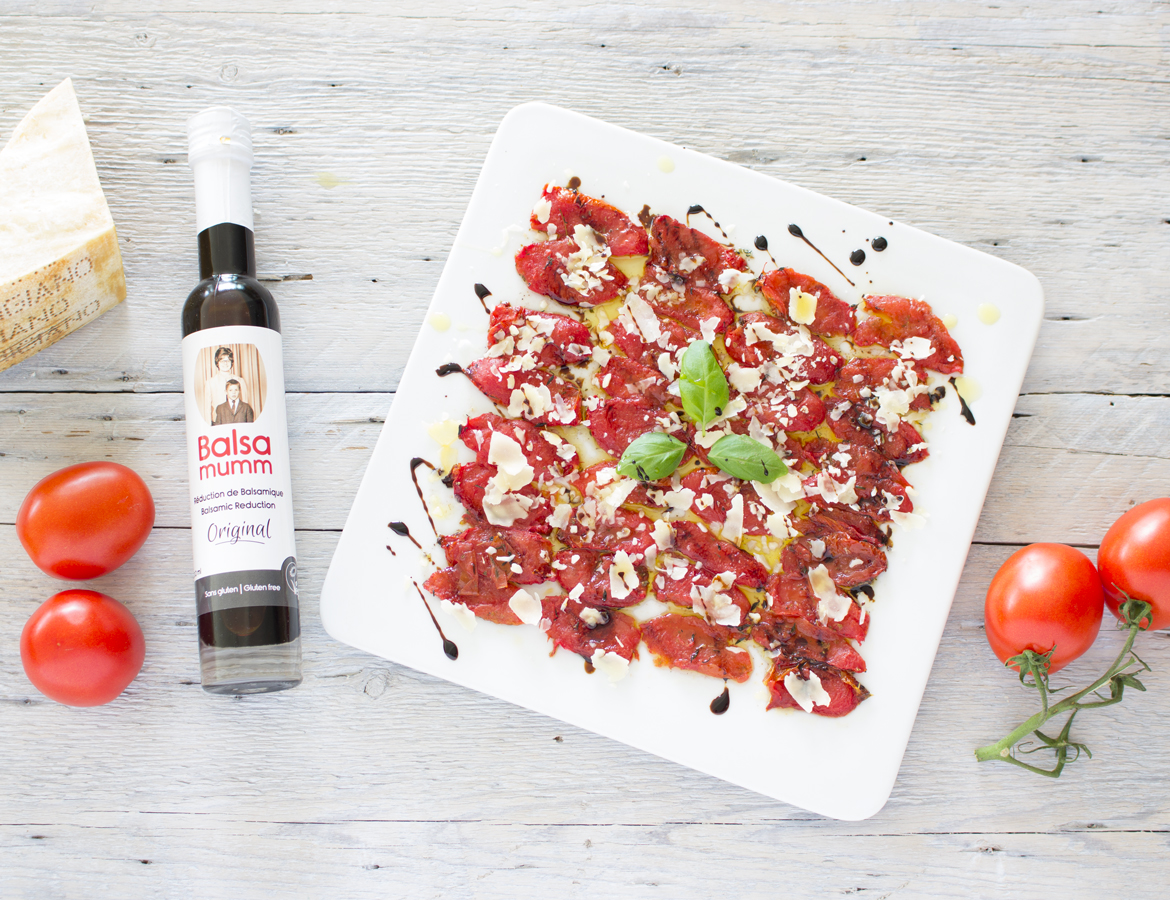 Oven roasted roma tomato Carpaccio